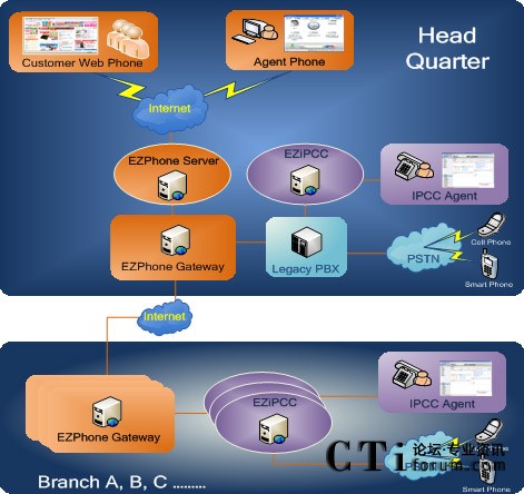 注釋:此拓撲圖中涉及的EZPhone system是EZ系列多媒體呼叫中心系統(tǒng),我們會在正式GA后,通過SOPHO市場部第一時間向大家宣布!