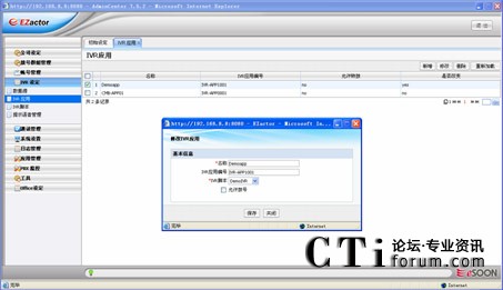 IVR Application 將會根據(jù)一組設(shè)計好的腳本運行, Script Manager 管理發(fā)布到 EZ-iPCC 的IVR腳本, 使用者可以在此綁定一個IVR Application產(chǎn)生IVR應(yīng)用程序, 爾后 IVR Application 在綁定一個交換機可辨識的分機號碼后, 部署在IVR Server 運行。