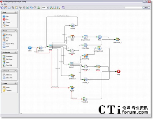 透過此組件, 使用者可以定制符合企業(yè)需求的 IVR 語音菜單, 設(shè)計IVR流程,其中包含基本組件、路由組件、目的組件、進階組件;提供組織流程、交互語音、以及設(shè)定路由等相關(guān)功能. 另外語音類別組件包含提示語 (Prompt) 組件, 輸入 (Input) 組件則提供使用者與 IVR 間語音交互操作等相關(guān)功能。