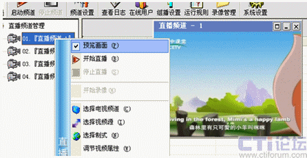 用鼠標(biāo)右鍵點(diǎn)擊直播頻道管理下的某個(gè)頻道號(hào),我這里選擇01:在彈出的右鍵菜單中選擇“直播頻道設(shè)置”或者點(diǎn)擊工具欄里的“頻道設(shè)置”圖標(biāo),出現(xiàn)下面的設(shè)置圖:
