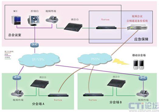 反應(yīng)迅速,確保會(huì)議正常召開(kāi):視頻會(huì)議過(guò)程中,出現(xiàn)任何故障,用戶(hù)可一鍵迅速切換至備份系統(tǒng)。系統(tǒng)即刻通過(guò)PSTN網(wǎng)傳輸?shù)臅?huì)議語(yǔ)音,利用已有的音箱、麥克等傳入和傳出會(huì)場(chǎng),確保會(huì)議語(yǔ)音正常召開(kāi)。