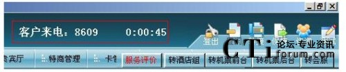 實時顯示呼叫時長和客戶來電號碼,并且顯示了常用的轉(zhuǎn)接業(yè)務組和軟電話可操作模塊。