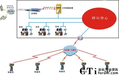 系統(tǒng)通過(guò)人工坐席、自助語(yǔ)音服務(wù)、電子郵件、傳真、即時(shí)聊天工具等方式,受理客戶所申辦的快遞業(yè)務(wù),生成派單并轉(zhuǎn)發(fā)給相應(yīng)部門進(jìn)行處理。待處理結(jié)果通過(guò)網(wǎng)絡(luò)返回到企業(yè)呼叫中心后,客服人員以電話、傳真、短信息、電子郵件等方式回復(fù)客戶。客戶也可隨時(shí)通過(guò)本系統(tǒng)了解所申辦業(yè)務(wù)現(xiàn)處于哪一環(huán)節(jié)及哪一部門所處理。系統(tǒng)的來(lái)電彈跳功能可以使客服人員第一時(shí)間獲知來(lái)電者的身份背景資料,迅速了解其歷史消費(fèi)信息、詳細(xì)地址等等資料。