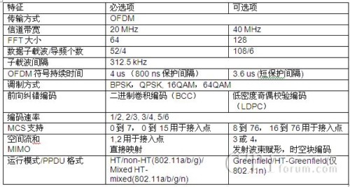表3:IEEE802.11ac 的主要特性(黑體字是ac新增加的)