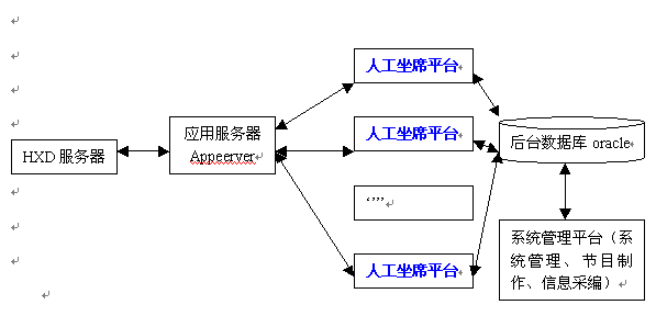 1) 數(shù)據(jù)庫系統(tǒng): 存放各類待查信息數(shù)據(jù)、話務(wù)統(tǒng)計(jì)數(shù)據(jù)、話務(wù)員操作明細(xì)數(shù)據(jù)等;