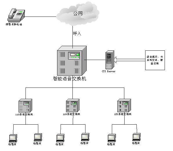 公安綜合信息呼叫中心系統就是在呼叫中心基礎上利用先進的CTI技術,將現存和即將開通的信息系統有機地整合起來;即把數字語音技術、計算機網絡技術、通信、交換等先進技術結合起來,結合公安業(yè)務特點,擴展和增強公安信息應用系統的功能,使現有數據庫資源得到充分利用;還可使一部分可以公開或應該公開的公安信息向社會提供增值服務,如出入境辦理查詢、身份證查詢、車輛駕駛員信息查詢等。本系統以110、119、122綜合報警服務為龍頭,以各項公安工作信息化為主要內容,以公安計算機信息、通信網絡為依托,以對內提供信息多種方式綜合利用、對外提供社會服務為目的,以當前先進的INTENNET、CTI、數據庫技術為手段,建立起的對內統一受理、指揮調度、快速反應、協同作戰(zhàn);對外警務公開、信息咨詢、查詢、投訴舉報為一體的公安綜合信息呼叫中心系統。
