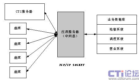 數(shù)據(jù)接口采用三層C/S結(jié)構(gòu),通過構(gòu)建功能強大的應用服務(wù)器,把呼叫中心的數(shù)據(jù)流與燃氣公司客戶系統(tǒng)、營業(yè)系統(tǒng)、搶修系統(tǒng)和燃氣調(diào)度系統(tǒng)結(jié)合起來,充分利用了已有系統(tǒng)標準的數(shù)據(jù)接口,實現(xiàn)對后臺數(shù)據(jù)庫的訪問。如圖2