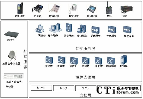 C網(wǎng)、G網(wǎng)、3G、PSTN網(wǎng)、VOIP網(wǎng)、衛(wèi)星電話、數(shù)字集群系統(tǒng)及短波電臺、超短波電臺及各頻段對講機(jī)等無線設(shè)備互聯(lián)互通。