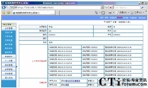 座席員工可以根據姓名、電話、訂單編號查詢出客戶的詳細定購信息、郵寄單號、歷史定購、咨詢歷史等。