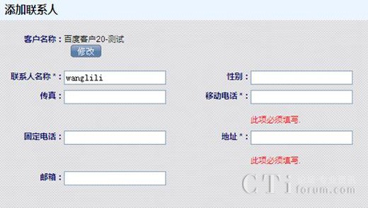 聯(lián)系人管理與客戶管理操作方法大致相同,功能相當(dāng)于客戶管理下客戶資料內(nèi)的添加聯(lián)系人功能。您可以按客戶名稱為搜索條件選擇所要添加聯(lián)系人的目標(biāo)客戶。
