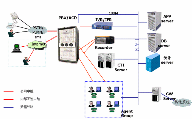 在建立呼叫中心前,廣州自來(lái)水公司只有覆蓋公司和各供水管理所的供水熱線(xiàn)系統(tǒng),該系統(tǒng)只有簡(jiǎn)單的接入電話(huà),沒(méi)有完善的呼叫中心功能,話(huà)務(wù)量承受能力小,接通率低,沒(méi)有統(tǒng)一的服務(wù)窗口和后臺(tái),統(tǒng)計(jì)功能也只能靠手工實(shí)現(xiàn)。為了更好的為廣大市民服務(wù),廣州市自來(lái)水公司決定取消原先供水熱線(xiàn)工作模式,由公司成立客戶(hù)服務(wù)中心集中管理,建立基于互聯(lián)網(wǎng)的呼叫中心,負(fù)責(zé)全市范圍內(nèi)客戶(hù)服務(wù),使客戶(hù)能夠通過(guò)各種資訊工具如電話(huà)、傳真、電子郵件、短信等方式從自來(lái)水公司獲取用水信息,并能實(shí)現(xiàn)業(yè)務(wù)申請(qǐng)、投訴、業(yè)務(wù)受理、業(yè)務(wù)咨詢(xún)、業(yè)務(wù)查詢(xún)等,采用回?fù)芗夹g(shù)實(shí)現(xiàn)客戶(hù)回復(fù)、客戶(hù)回訪(fǎng)、客戶(hù)調(diào)查等業(yè)務(wù)。