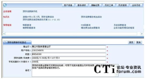 要實(shí)現(xiàn)此目的,IT支撐系統(tǒng)將高技能座席的處理能力“推送”給普通座席。第一章我們論述了IT支撐系統(tǒng)可以以客戶應(yīng)用場(chǎng)景為核心,通過分析流程分析客戶訴求找到客戶真正的需求?梢詫⑦@一思路推演下去,針對(duì)客戶的某個(gè)具體需求,呼叫中心制定統(tǒng)一的解決方案。我們以下面的“預(yù)存話費(fèi)換手機(jī)”為案例。通過先期溝通,座席已經(jīng)知曉這是客戶的真正訴求,只需要選擇好“預(yù)存話費(fèi)換手機(jī)”的業(yè)務(wù)類型,IT支撐系統(tǒng)會(huì)顯示出集成在一個(gè)頁(yè)面中的全套解決方案:處理此訴求可能用到知識(shí)庫(kù)中的三個(gè)知識(shí)點(diǎn);需要查詢的客戶信息,經(jīng)常給客戶發(fā)送的短信內(nèi)容;處理此訴求可能執(zhí)行的登記任務(wù),……