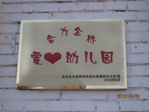 2012年3月29日,清大拓維IN26全體學員,在張家口市崇禮縣白旗鄉(xiāng)小學舉行了“真心朋友永相伴 快樂人生你我他”大型公益活動。作為一家具有社會責任感的企業(yè),“北京合力金橋軟件技術有限責任公司”斥資為該小學建成了硬件設施齊全的校內幼兒園,并命名為“合力金橋愛心幼兒園”。此舉使白旗鄉(xiāng),這個地處國家貧困縣的孩子們終于有了與城市媲美的幼教場所,也幫助當地尚未達到學齡的孩子有了屬于自己的學習、成長環(huán)境。