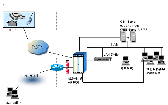 。。華為的INtess®-e型多媒體呼叫中心產(chǎn)品,是集成了交換機(jī)和計算機(jī)網(wǎng)絡(luò)的系統(tǒng),根據(jù)國內(nèi)各經(jīng)營服務(wù)行業(yè)的業(yè)務(wù)特點和發(fā)展趨勢,以及華為公司對國內(nèi)電子商務(wù)發(fā)展的深刻理解,以充分理解和貼近用戶需求為設(shè)計、開發(fā)理念推出的高集成度的小型呼叫中心平臺。