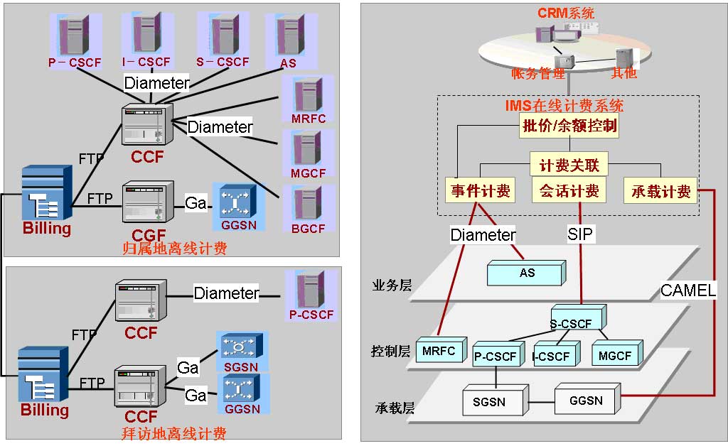 圖4左邊為離線計費系統(tǒng)、右邊為在線計費系統(tǒng)。