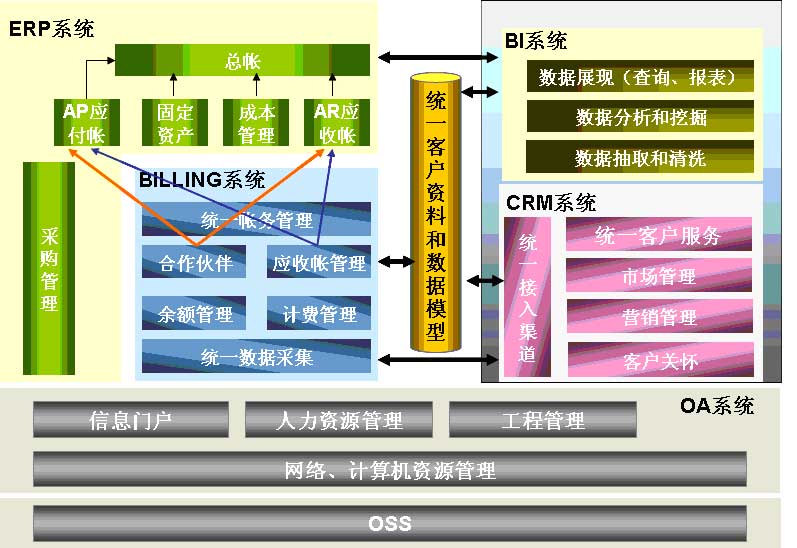 在IMS時代計費將向網(wǎng)絡(luò)側(cè)傾斜,傳統(tǒng)的BSS將向BOMS(BusinessOperationManagementSystem)演進,BSS的重心將向營銷、CRM和服務(wù)等業(yè)務(wù)管理及分析轉(zhuǎn)變。結(jié)合NGOSS的發(fā)展,運營支撐系統(tǒng)逐漸演變?yōu)镃RM+BILING的體系架構(gòu)。