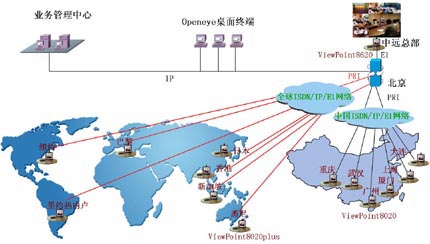 中國遠(yuǎn)洋(集團)公司全球會議電視系統(tǒng)覆蓋全國13個分部和全球8個分公司,系統(tǒng)主會場在中遠(yuǎn)集團公司總部。系統(tǒng)采用ISDN、E1、IP混合組網(wǎng),使用了一套ViewPoint 8620視訊交換平臺、20套ViewPoint8020plus視訊終端和3套Openeye桌面終端,實現(xiàn)了中遠(yuǎn)(集團)公司和全球所有分支機構(gòu)之間的遠(yuǎn)程會議和業(yè)務(wù)培訓(xùn)。