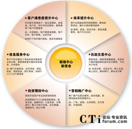 對(duì)于銀行業(yè)來說,聯(lián)絡(luò)中心已經(jīng)成為為客戶提供優(yōu)質(zhì)、快捷的金融理財(cái)服務(wù)的第二窗口。隨著電子化建設(shè)的不斷深入,寬帶、Internet和3G時(shí)代帶來的IP融合,聯(lián)絡(luò)中心為金融服務(wù)帶來了更廣泛的創(chuàng)新,未來的銀行聯(lián)絡(luò)中心將為客戶提供的金融服務(wù)趨于無所不能。銀行聯(lián)絡(luò)中心已經(jīng)成為自助交易中心、投資理財(cái)中心、營(yíng)銷推廣中心和信息服務(wù)中心,借助聯(lián)絡(luò)中心,銀行與客戶可以隨時(shí)隨地建立緊密的多媒體互動(dòng),提升客戶滿意度和服務(wù)效率。