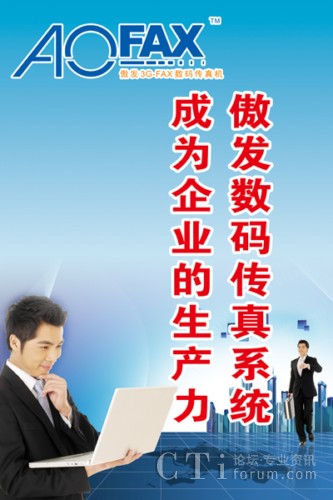 CTI論壇(ctiforum)4月24日消息(記者 歐陽): 經(jīng)濟發(fā)展外圍形式嚴峻,經(jīng)濟增速放緩,人工、生產(chǎn)成本高位運行,部分企業(yè)效益大幅降低。那么,中小企業(yè)如何提高自身的競爭力呢?作為企業(yè)辦公通信必不可少的設備,電子傳真機、數(shù)碼傳真機、無紙傳真機、網(wǎng)絡傳真機、電腦傳真機、傳真卡、傳真群發(fā)器、傳真服務器等新型電腦傳真系統(tǒng)的迅速熱銷,也能助企業(yè)一臂之力,由金恒科技(深圳)有限公司推出的傲發(fā)3G-FAX(AOFAX)系列電子傳真和傳真服務器產(chǎn)品是其中的佼佼者,占據(jù)著新型傳真市場的大半江山,受到廣大消費者的一致好評。