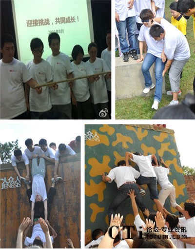 CTI論壇(ctiforum)10月12日消息(記者 張潔):為了進(jìn)一步推動(dòng)企業(yè)和員工的共同發(fā)展,增強(qiáng)團(tuán)隊(duì)的協(xié)作能力和責(zé)任意識(shí),易才博普奧于2011年8月18日至8月19日于房山青龍湖人眾人拓展訓(xùn)練基地組織開展了主題為“破冰之旅”的戶外團(tuán)隊(duì)拓展活動(dòng)。這次活動(dòng)集結(jié)了來(lái)自易才博普奧呼叫中心事業(yè)部、公共服務(wù)部、整合行銷事業(yè)部、項(xiàng)目部等七個(gè)部門的120多名員工。在短短的兩天培訓(xùn)時(shí)間里,各部門領(lǐng)導(dǎo)員工融入到一起參與到各項(xiàng)活動(dòng)中,受益匪淺,感慨良多。