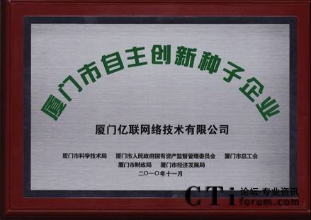 根據(jù)國家科技部、國務(wù)院國資委和全國總工會(huì)三部委制定的“創(chuàng)新型企業(yè)試點(diǎn)工作實(shí)施方案”和廈門市“技術(shù)創(chuàng)新引導(dǎo)工程實(shí)施方案”具體要求,市科技局、市國資委、市總工會(huì)、市財(cái)政局、市經(jīng)發(fā)局聯(lián)合開展了2010年廈門市自主創(chuàng)新示范、試點(diǎn)、種子企業(yè)評選工作。經(jīng)專家評審和市五部門聯(lián)合審核后,廈門億聯(lián)網(wǎng)絡(luò)技術(shù)有限公司(以下簡稱億聯(lián))憑借科技、環(huán)保的產(chǎn)品和強(qiáng)大的研發(fā)實(shí)力獲得了廈門市自主創(chuàng)新種子企業(yè)獎(jiǎng)。
