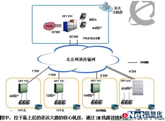 在總體方案上,在遠(yuǎn)大路核心機(jī)房部署的高性能交換機(jī)作為全網(wǎng)的核心;各個分支分別配置支持E1中繼上聯(lián)到核心交換機(jī);但同時,各個分支也具備本地的獨(dú)立工作能力,即使在中繼線路出現(xiàn)故障的情況下,也能正常的工作。