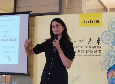 2008年10月21日,上海,來自丹麥的全球第一耳麥制造商GN大北歐在位于中山南路的老碼頭廣場內(nèi)為旗下新推出的兩款辦公耳麥產(chǎn)品—Jabra