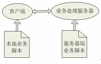 整個業(yè)務數(shù)據和業(yè)務處理都由XML配置管理,系統(tǒng)業(yè)務被分成本地業(yè)務邏輯和服務器端業(yè)務邏輯,客戶端通過提取本地業(yè)務邏輯腳本中的數(shù)據處理業(yè)務邏輯,業(yè)務處理服務器通過提取服務器端業(yè)務邏輯腳本中的數(shù)據訪問數(shù)據庫,并將數(shù)據庫返回結果發(fā)往客戶端。本地業(yè)務邏輯和服務器端業(yè)務邏輯之間的邏輯關系是通過一套配置腳本維護。如圖: