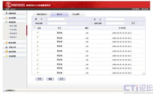 利用統(tǒng)計(jì)部分的四項(xiàng)內(nèi)容實(shí)現(xiàn)對(duì)座席從招聘前、招聘中和招聘后的全面管理,通過培訓(xùn)使座席擁有工作必備的知識(shí)、技能和能力,培養(yǎng)他們對(duì)企業(yè)的認(rèn)同感、歸屬感,同時(shí),利用詳盡的考勤管理最大限度、公平合理地滿足座席內(nèi)在報(bào)酬和外在報(bào)酬上的期望和需要。