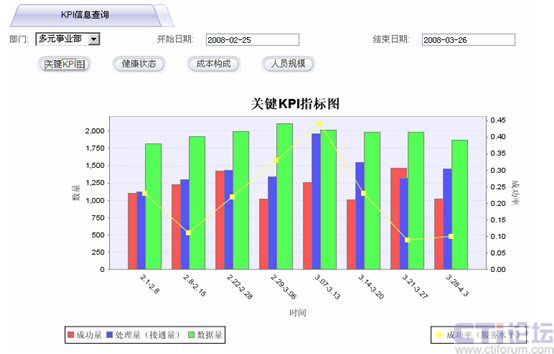 (2)分析部分以效能分析為主,主要以圖表的形式,可以展示以天、周、月、季、半年、年為單位的個(gè)人或小組的各時(shí)段效能分析(如圖二所示)。用真實(shí)可視的數(shù)據(jù)來代替主觀判斷與評(píng)價(jià),實(shí)現(xiàn)呼叫中心的數(shù)字化管理及科學(xué)化管理,提高工作效率。