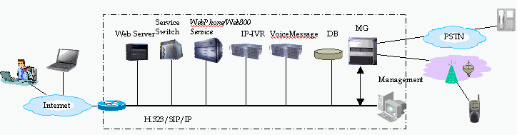 Web800電信級(jí)解決方案為電信運(yùn)營(yíng)商以ASP的模式運(yùn)營(yíng)800業(yè)務(wù)提供了良好的解決途徑。該方案要求電信運(yùn)營(yíng)商安裝Web800 Server、媒體網(wǎng)關(guān)、數(shù)據(jù)庫(kù)等系統(tǒng)核心部件、AAA Server,挑選IP IVR等作為可選部件。Web800無(wú)需更新原有的系統(tǒng)設(shè)施,就可與傳統(tǒng)的800號(hào)業(yè)務(wù)進(jìn)行融合;系統(tǒng)在完成遠(yuǎn)程的IP網(wǎng)絡(luò)傳輸過(guò)程后,經(jīng)過(guò)IP網(wǎng)關(guān),即接入原有傳統(tǒng)800系統(tǒng),將遠(yuǎn)程呼叫擴(kuò)展為基于Web的呼叫方式,同時(shí)又保護(hù)電信運(yùn)營(yíng)商的原有投資,使之延續(xù)。 該方案具有電信級(jí)的高性能指標(biāo):同時(shí)在線(xiàn)最大人數(shù)為10000人/臺(tái);語(yǔ)音質(zhì)量介于固定電話(huà)和移動(dòng)電話(huà)之間;服務(wù)器無(wú)故障運(yùn)行時(shí)間<5天/年等。系統(tǒng)還具有專(zhuān)門(mén)的運(yùn)營(yíng)商管理功能,通過(guò)Web頁(yè)面即可進(jìn)行系統(tǒng)管理、呼叫記錄統(tǒng)計(jì)等。
