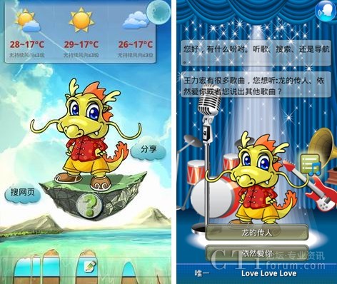 聰明、善解人意的小唐龍基于開放的Android操作系統(tǒng),在捷通華聲全球首個全方位智能人機交互(HCI)感知云-靈云平臺的支持下,會學習,善思考,能說會聽,能寫會識。此次正式發(fā)布的小唐龍界面更加清新亮麗,令人耳目一新;獨一無二的語音與手寫全方位人機交互,讓用戶在任何情況下都可以無障礙的使用小唐龍;重新構建設計的音樂播放的界面,增加歌詞顯示功能,讓用戶隨心所欲的添加、刪除、選擇、演唱歌曲;新聞播報清晰自然,流暢動聽,新聞內容更加豐富,讓天下大事隨時都掌握在用戶手中;地圖查詢實現(xiàn)全國范圍方便快捷的導航、公交查詢、餐飲服務;全國地區(qū)天氣預報等功能的完善,給用戶的生活帶來的極大的便利。全新小唐龍讓手機助手之名更加名副其實!
