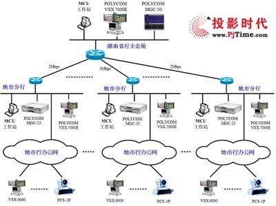 建成后的新湖南省農(nóng)業(yè)銀行視頻會(huì)議系統(tǒng)圖