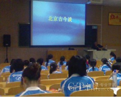 7月25日中央財經(jīng)大學(xué)的課堂里,近百位奧運觀眾呼叫中心的志愿者聆聽了北京第二外國語大學(xué)西班牙語呂龍根教授的講座——“北京古今談”。呂教授幽默的語言、澎湃的激情,感染并征服了在座的每一位志愿者。教授從中國古代的六大古都(北京、西安、洛陽、開封、南京、杭州)談到古代北京的五朝建都(遼、金、元、明、清),從北京偉大的中軸線,談到北京建筑的風(fēng)水學(xué),從北京的胡同和四合院,談到北京的著名小吃,等等等等?芍^是古今暢想、無所不談,真正讓我們領(lǐng)略了何為學(xué)者風(fēng)范。