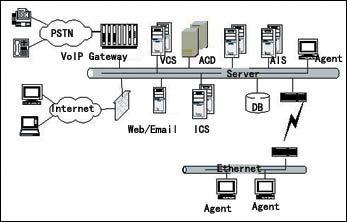 系統(tǒng)內(nèi)部所有媒體呼叫均采用IP數(shù)據(jù)包的格式由核心ACD Server統(tǒng)一處理,完成呼叫控制、路由處理、與呼叫同步的用戶數(shù)據(jù)管理及信息監(jiān)視。對于整個(gè)系統(tǒng)而言,雖然媒體接入方式各不相同,但路由策略卻可以完全一致。客戶可隨時(shí)隨地通過各種媒體與企業(yè)進(jìn)行緊密聯(lián)系。通過核心控制系統(tǒng),采用一致的路由方式,可以追蹤及管理所有媒體以及一切客服系統(tǒng)人力資源。