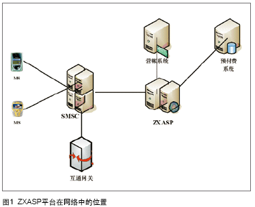 ZXASP:中興短消息增值業(yè)務(wù)平臺,是一個位于SMSC后端的增值業(yè)務(wù)邏輯控制處理網(wǎng)元,它為用戶提供新型短信增值業(yè)務(wù)開戶、銷戶以及業(yè)務(wù)使用流程控制支持等相關(guān)功能。核心網(wǎng)元ZXASP分別與短信中心、營帳系統(tǒng)以及預(yù)付費系統(tǒng)進行連接,以實現(xiàn)對用戶簽約多種增值業(yè)務(wù)情況下的服務(wù)支持。如圖1。