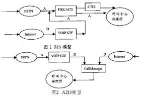 A2D法(Analog to Data) A2D法即事先將呼入呼叫中心的DTMF電話通過VoIP網(wǎng)關(guān)轉(zhuǎn)化為IP電話,再和來自Internet的IP電話一同接入座席代表。A2D法實現(xiàn)相對比較麻煩,但其將絕大部分工作放到計算機網(wǎng)絡這個開放的軟件平臺來做,除了有利于更新和開發(fā)外,還能降低成本。同時,這種結(jié)構(gòu)能在地理上和物理上伸縮自如,不僅便于高度集成,而且便于跨地區(qū)構(gòu)建。