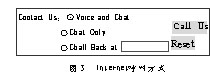 客戶服務中心系統(tǒng)提供的Internet服務方式包括:VoIP(即Internet上的語音交談)、Text Chat(文本方式的交談)、PSTN Call Back(電話回呼)、E-mail 以及伴隨瀏覽和網(wǎng)頁共享等(圖3)。