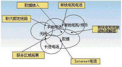 數(shù)據(jù)服務(wù)同本地電話服務(wù)的融合,是不來最重要的融合趨勢(shì)之一,其主要體現(xiàn)在通過本地電話可以解決數(shù)據(jù)業(yè)務(wù)的接入問題,可以提供窄帶或?qū)拵У慕尤肽芰。同時(shí),可以為Internet服務(wù),如電子郵件服務(wù)同電話話音服務(wù)結(jié)合起來創(chuàng)造條件。一種未來的發(fā)展方向就是利用電話來接收電子郵件同時(shí)可以用電子郵件的方式閱讀語言信箱中的留言!奥犽娮余]件,看語言信箱”是對(duì)這種融合服務(wù)的最好描述。而數(shù)據(jù)業(yè)務(wù)同長(zhǎng)途電話業(yè)務(wù)的融合集中于通過VoIP技術(shù)提供長(zhǎng)途電話服務(wù),競(jìng)爭(zhēng)收入最大的電信市場(chǎng)。數(shù)據(jù)服務(wù)同有線電視娛樂服務(wù)的融合主要體現(xiàn)在以Cable Modem做為數(shù)據(jù)接入手段和視頻點(diǎn)播這樣的娛樂服務(wù)。通過Cable Modem,有線電視網(wǎng)也可以提供本地電話和長(zhǎng)途電話接入業(yè)務(wù),象AT&T和TCI 及MediaOne 正在進(jìn)行的電話業(yè)務(wù)實(shí)驗(yàn)。而寬帶的數(shù)據(jù)接入則為數(shù)據(jù)服務(wù)的寬帶化提供了條件。