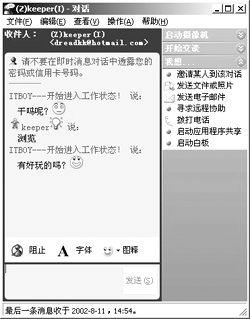 聊天功能是IM軟件最基本、也是最重要的功能,基本上每一種IM軟件在這個功能上的操作都差不多:如果用戶想與聯(lián)系人進行聊天,可以雙擊IM中聯(lián)系人的頭像,在彈出的對話框中敲入文字信息發(fā)送即可。QQ的特點是可以給不在線的朋友發(fā)送信息,對方下次上線的時候可以收到,MSN雖然不具備這樣的功能,但是它在聊天過程中可以使用各種漂亮的表情圖標為聊天添加了不少情趣。