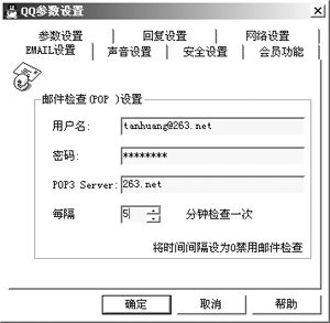 IM和E-mail是我們在網(wǎng)上最常用的兩種工具,如今不少IM軟件將兩者作了完美的結(jié)合。在QQ中你可以直接給自己的好友發(fā)郵件,而無須再輸入E-mail地址;此外對于自己的信箱QQ還有檢查新郵件功能,在“系統(tǒng)參數(shù)”中設(shè)置您自己的E-mail,填好POP3地址,您可以選擇定時檢查時間,QQ就會自動檢查有否新郵件到達。對于MSN