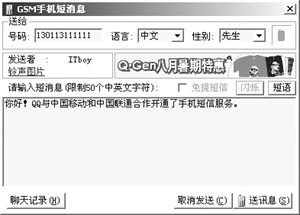 目前IM與各種移動終端設(shè)備的結(jié)合也越來越多。使用QQ向手機發(fā)送短信需要手機開通移動QQ服務,單擊對方頭像圖標,在打開的快捷菜單中選擇“手機短訊”命令,在打開的對話框中輸入信息,然后點擊發(fā)送即可完成,這時對方的手機就可以收到一個消息。給BP機發(fā)短訊也是一樣,不過對方的BP機服務臺必須是QQ所支持的情況下才行。當對方的手機收到你發(fā)來的短信后還可以回復,這時候您的QQ會彈出“查看手機短訊”的窗口來,非常方便。