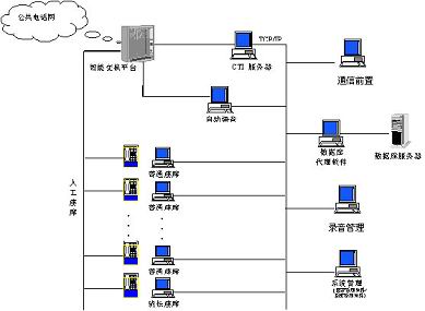 平安保險(xiǎn)北京分公司電話客戶服務(wù)系統(tǒng)包括兩部分:自動(dòng)語(yǔ)音和人工坐席。用戶撥入系統(tǒng)后,先進(jìn)入自動(dòng)語(yǔ)音系統(tǒng)進(jìn)行處理;用戶在任何時(shí)候均可按“0”轉(zhuǎn)入人工坐席。系統(tǒng)直接訪問(wèn)保險(xiǎn)公司的數(shù)據(jù)庫(kù),因此查詢的信息均為實(shí)時(shí)信息。