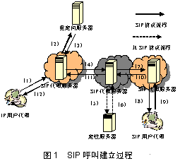 圖1是一個(gè)SIP呼叫建立過(guò)程的示意圖,其中: