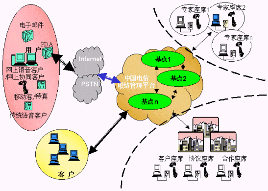 電信運(yùn)營商提供的用戶、客戶、電信公司的統(tǒng)一的聯(lián)系平臺(tái),各類客戶通過使用聯(lián)系平臺(tái),向其用戶提供方便的、不受時(shí)間、地域和媒體的限制的"3A"級(jí)聯(lián)絡(luò)服務(wù),用戶、客戶、電信平臺(tái)間的聯(lián)絡(luò)能得到有效路由、管理、品質(zhì)保障;聯(lián)絡(luò)中心通過將分布在各地、各種媒體、各種形式的資源整合在一起實(shí)現(xiàn)客戶服務(wù)增值,創(chuàng)造無限商機(jī),有效提升客戶聯(lián)絡(luò)中心的價(jià)值,使用戶得到最貼身的、個(gè)性化的、專業(yè)的服務(wù),為客戶提供成本更低、資源更豐富、服務(wù)更專業(yè)、具備強(qiáng)大商業(yè)智能的產(chǎn)品營銷及服務(wù)、電信運(yùn)營商則開發(fā)大量的增值服務(wù)、產(chǎn)生更多的利潤增長空間、更多忠實(shí)的客戶,實(shí)現(xiàn)三方面共同成功。