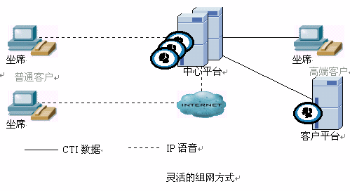 中心系統(tǒng)具備網(wǎng)絡(luò)呼叫中心及靈活的設(shè)備組網(wǎng)方式,必須使用多種媒體結(jié)合技術(shù),平臺(tái)能智能處理來自不同媒體的服務(wù)請(qǐng)求。多媒體包含了固定電話、移動(dòng)電話、傳真、尋呼、短消息、Web、Email、視頻、PDA等多媒體。