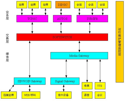 2003 Server操作系統(tǒng)上的平臺軟件實(shí)現(xiàn)CallCenter所需的功能:ACD,CTI,IVR。CT Ways與傳統(tǒng)CallCenter平臺的在軟件方面的最大區(qū)別是平臺軟件運(yùn)行在網(wǎng)格計算環(huán)境下,TCP/IP作為網(wǎng)絡(luò)通信協(xié)議。在硬件方面的區(qū)別是IVR硬件資源可與信令及交換資源合用。