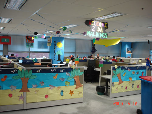 由于這種獨特的管理方式吸引了眾多的同行前來參觀,該中心特別安排了熱情的Sally負責導游。Sally帶我們參觀說的第一句話就是:“我真是喜愛我們的呼叫中心,這里的年輕人富有創(chuàng)意,充滿激情,他們非常喜歡在這里工作!庇谑俏覀儏⒂^了“蜘蛛俠”,“蒙娜麗莎”,“大英帝國”,“典雅餐廳”,“熱帶公園”,“幾何世界”,“海底世界”,“白色圣誕節(jié)”等不同的Pod,實在是好像到了聯合國。