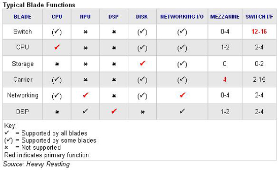 - 網絡刀片:具有網絡I/O(GE,Gigabit FC,T1/E1,OC3等)的node board。所有這些刀片都具有某種形式的網絡處理單元(NPU)。