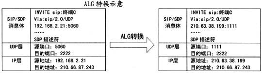 另外,如果ALG判斷出兩臺終端在同一私網內(如圖2中終端A、終端B),將不對IP包做修改,終端A、B可直接用自己的私有地址建立RTP連接。